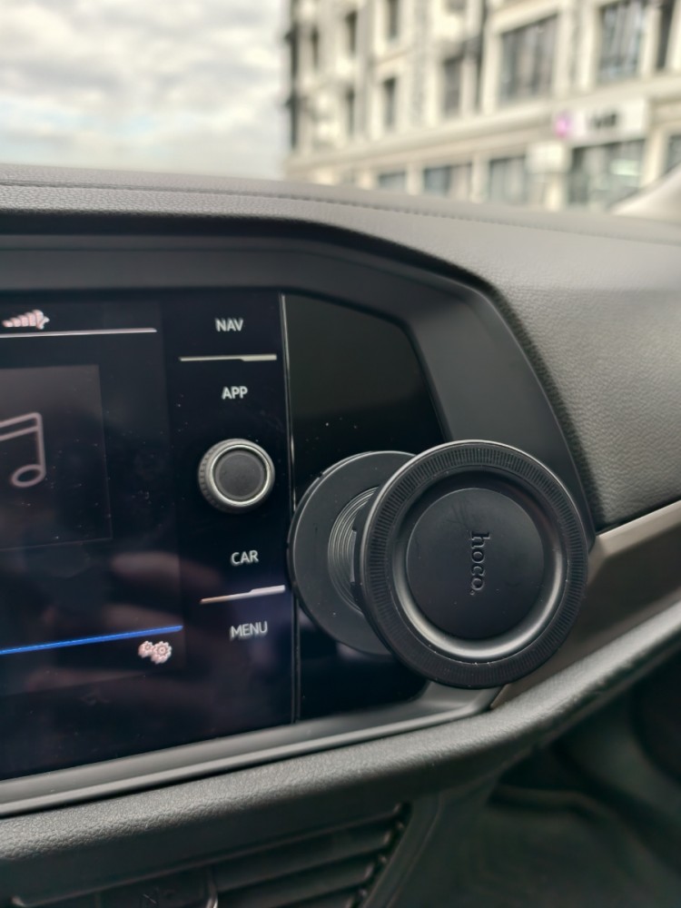Клейкое основание аксессуара отличается специальными прорезями, которые делят круг на "лепестки". Такая конструкция разрешает устанавливать магнитный держатель Hoco H61 на слегка изогнутые поверхности, увеличивая площадь сцепления