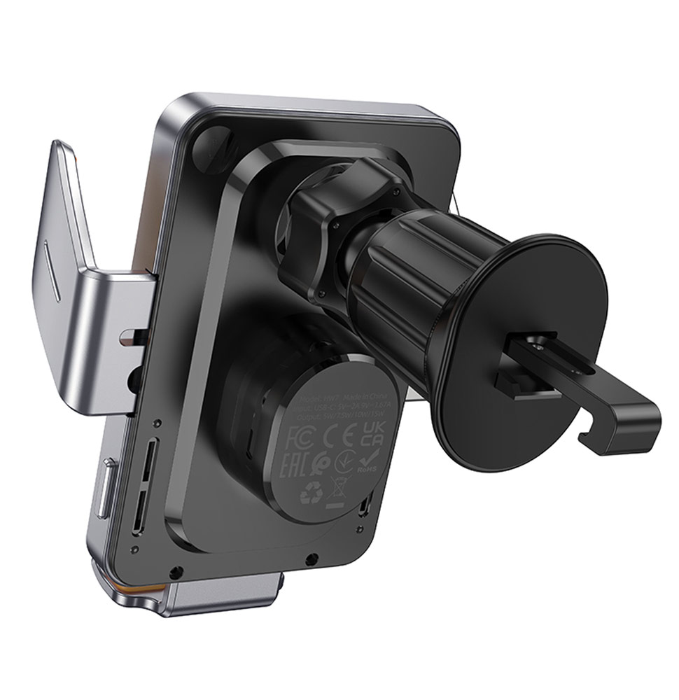 Упростите вождение автомобиля с Hoco HW7, полезный аксессуар сочетает в себе фиксацию телефона без помощи рук и технологию беспроводной зарядки. Держите свой телефон в безопасности, на виду и заряжайте его в дороге — всё в одном необычном решении
