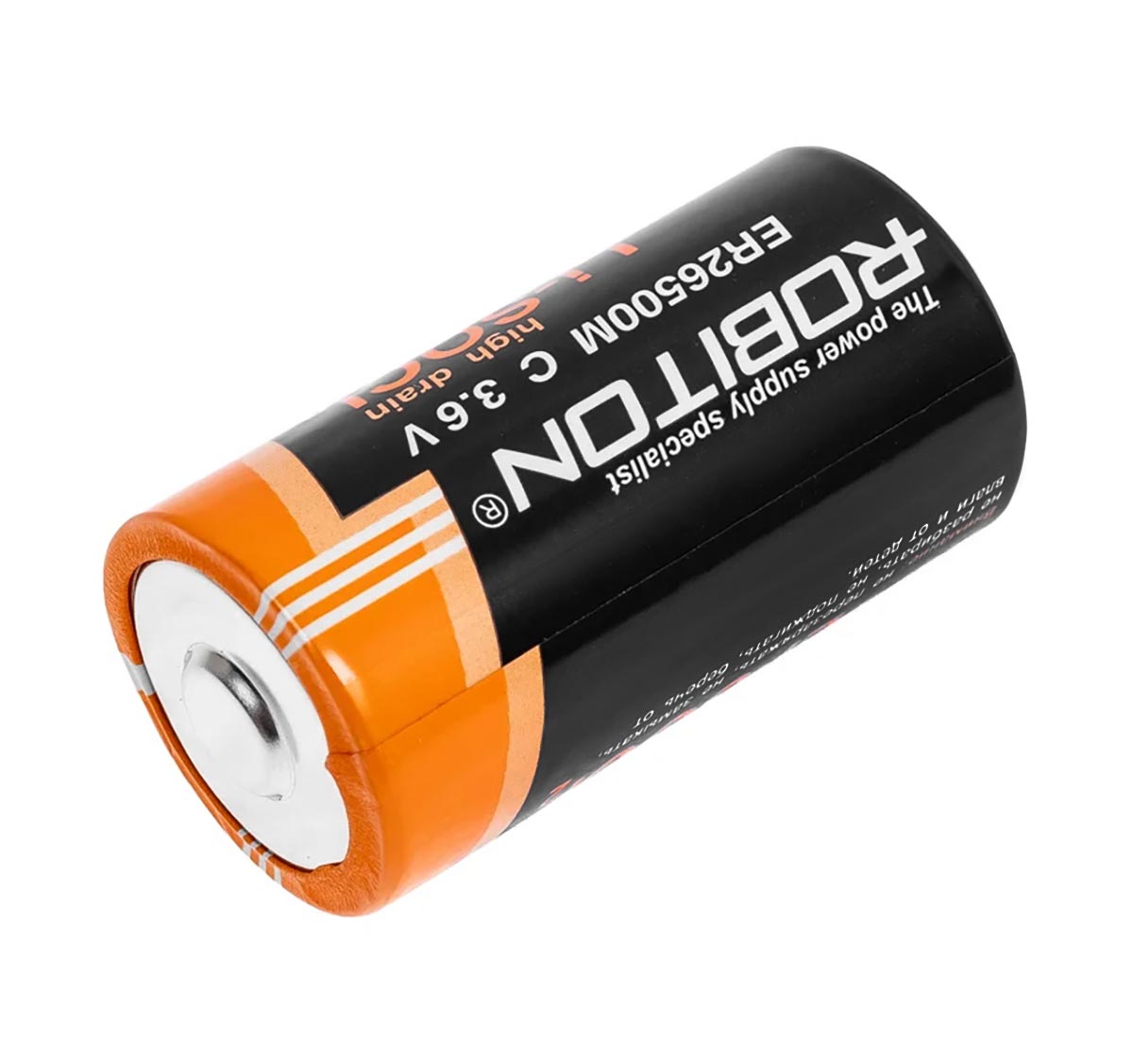 Robiton ER 26500M (C) - это одноразовый, литий-тионилхлоридный (Li-SOCl₂) элемент питания типоразмера С напряжением 3.6В