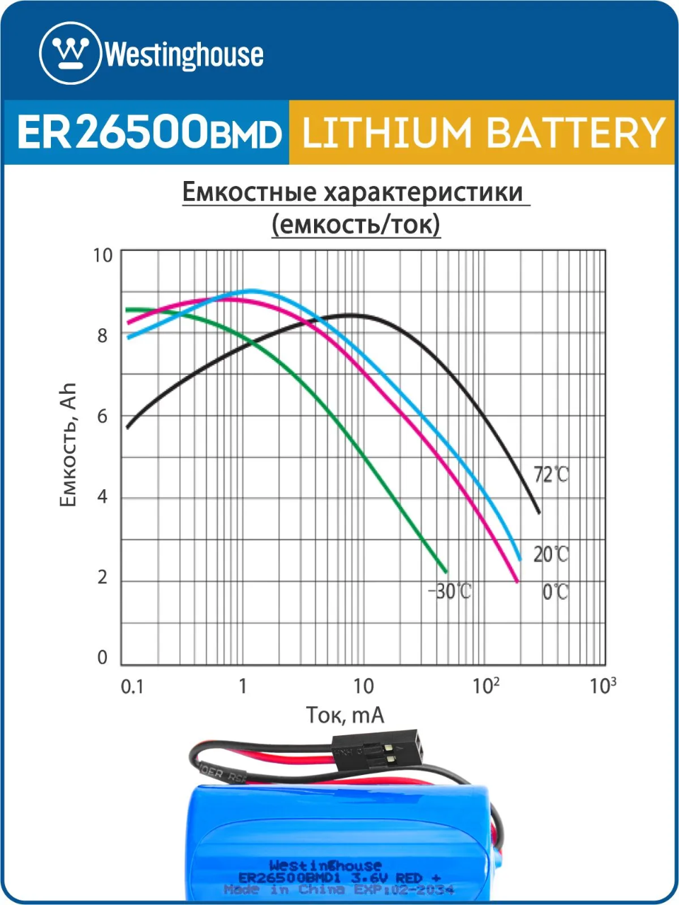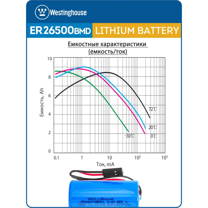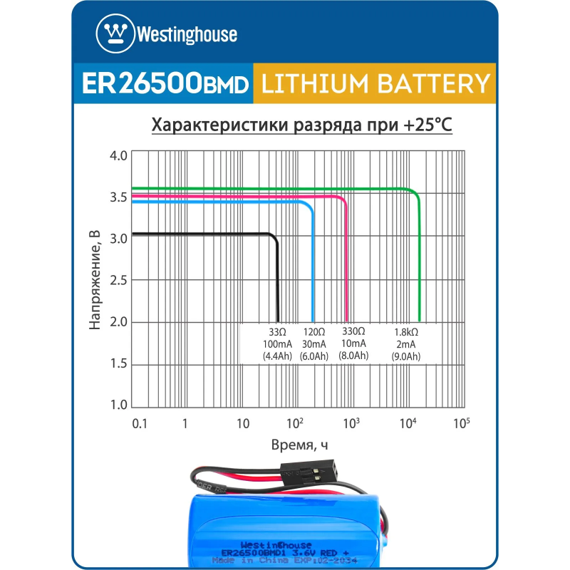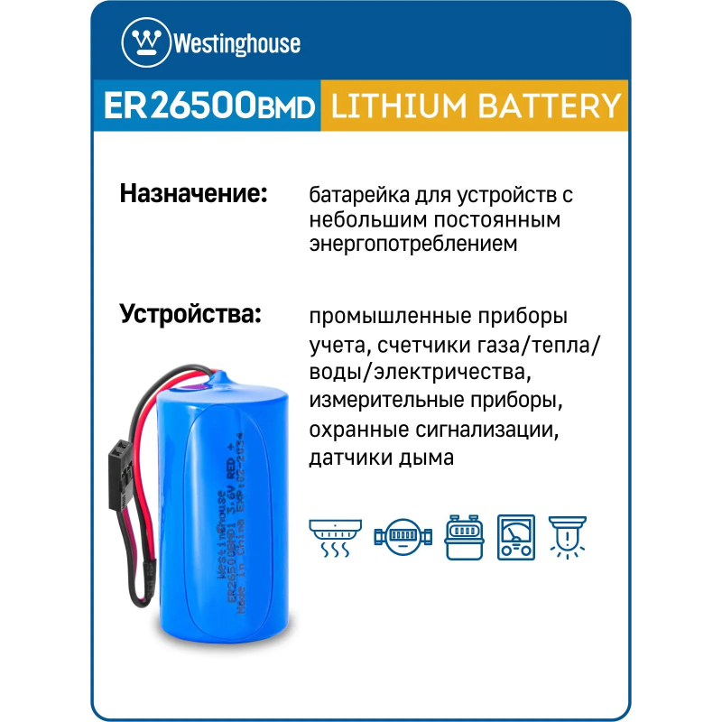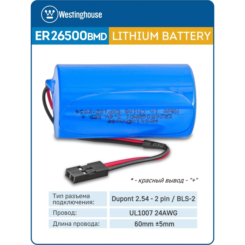 литиевые батарейки Westinghouse ER 26500BMD1 (C) connector 3шт.