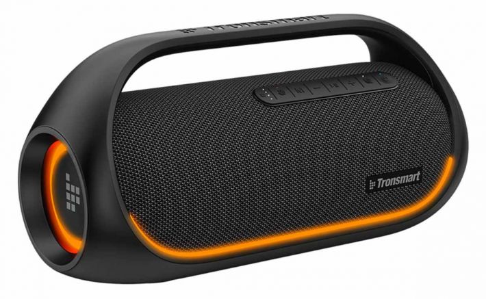 Tronsmart Bang способна воспроизводить музыку с флешки, карты памяти MicroSD (объемом до 128 Гб) и по аудиокабелю 3.5 мм. Управляется через мобильное приложение, имеет яркую, красочную подсветку, не боится дождя.